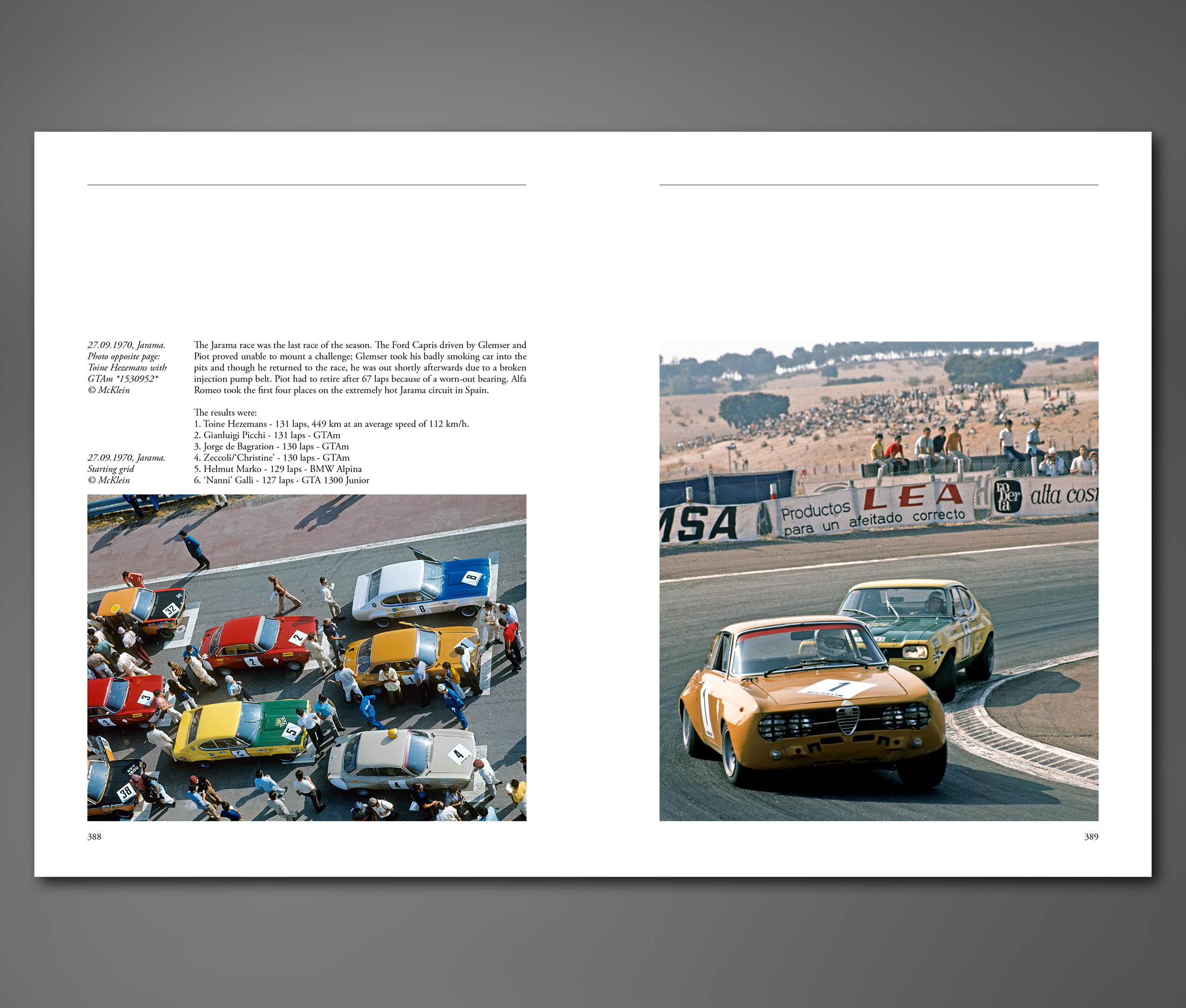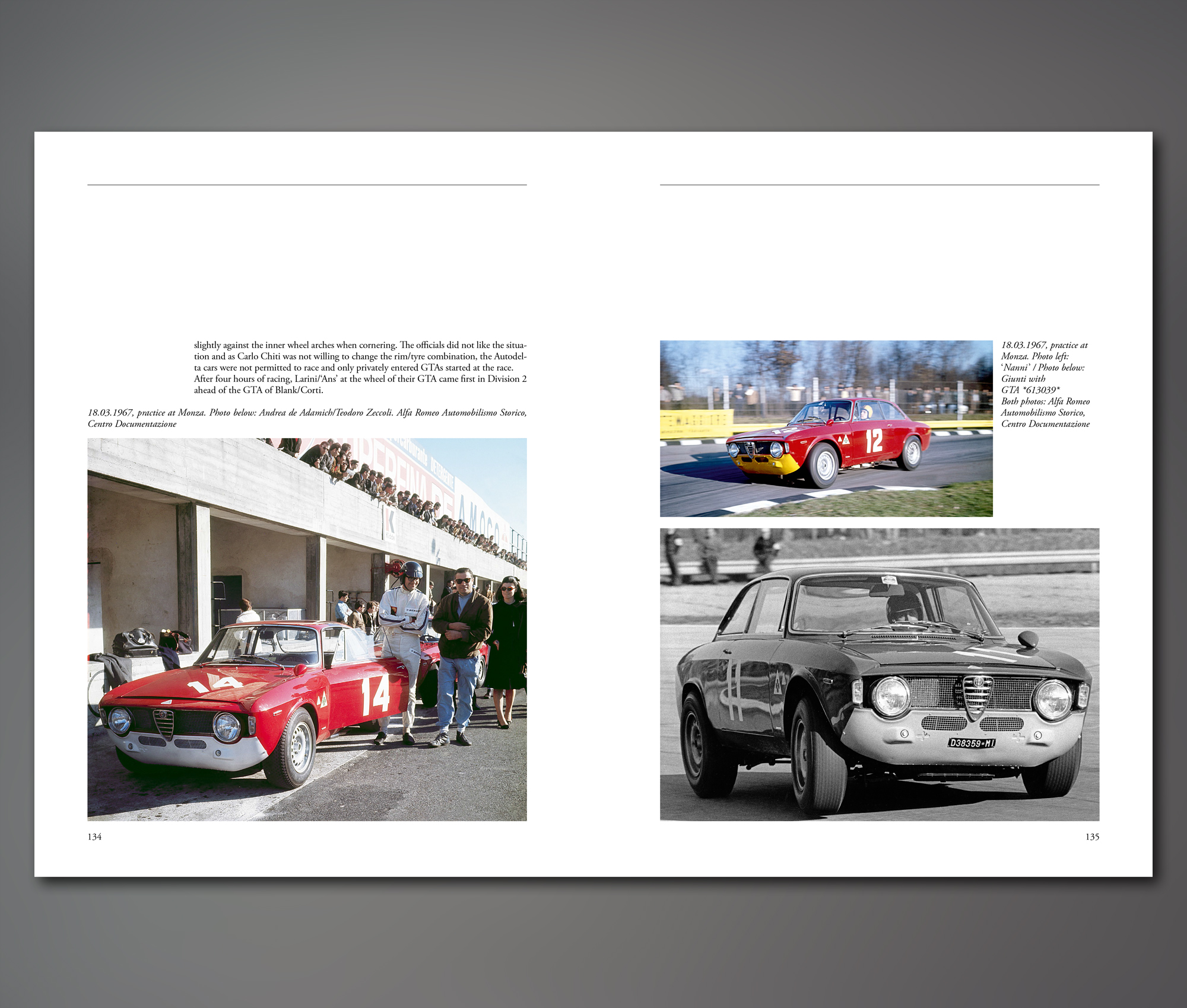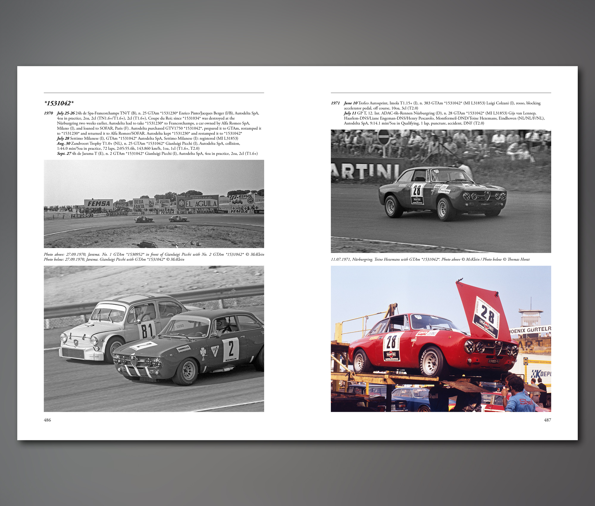 Alleggerita means lightened in Italian, so that GTA or GT AIIeggerita stands for lightened GT. As the courier staggered to my front door with two copies, one for my brother, the other for me, I remembered that the quoted weight for a copy was somewhere approaching 8.5 kgs. This is definitely not a lightweight publication. This new revised edition comes in three volumes. The first volume, some 460 pages, is the story of the development and the racing, of the 1600 GTA, the 1300 GT Junior, the 1300 GTA Junior and the GT Am. The second volume, another 460 odd pages, covers documentation and pictures of the genuine parts that make up these special Alfas. The documentation includes homologation form copies and much original data. The third volume, over 520 pages, carries a Register of the cars known to have been built, with histories where available and sufficiently certain to be publishable. Patrick Dasse tells me that what is published is about a third of what they have to hand but validation is an important part of the process. So, if you are lucky, your GTA may be shown with its early competition and/or ownership history. A line has been drawn at 1981, the year when the last homologation of these cars expired. You will get the picture, that this is not a lightweight exercise, especially as the 1450 pages are nicely printed on heavy quality paper. The first edition, by Tony Adriaensens, was published as a single volume back in 1994 by Tony’s Corsa Research operation in Holland. I was lucky enough to come across Tony at a race meeting that year, I think Zandvoort, took a deep breath and got Tony to sign a couple of copies for my brother and me. I have never regretted the purchase for a moment. His first edition was a refreshingly original piece of work from information and knowledge he had picked up from his travels and visits over many years, with quite a lot from a Benelux perspective. Alfa Romeo Benelux had always been an enthusiastic supporter of Alfa competitors, not least because the blue riband touring car race, the Spa 24 Hours, took place in the middle of its territory. Over the years following that first edition of Alleggerita has become recognised as probably the leading book on GTAs, helped by its publication in English. Eventually out of print, good used copies were fetching anywhere up to £1500.