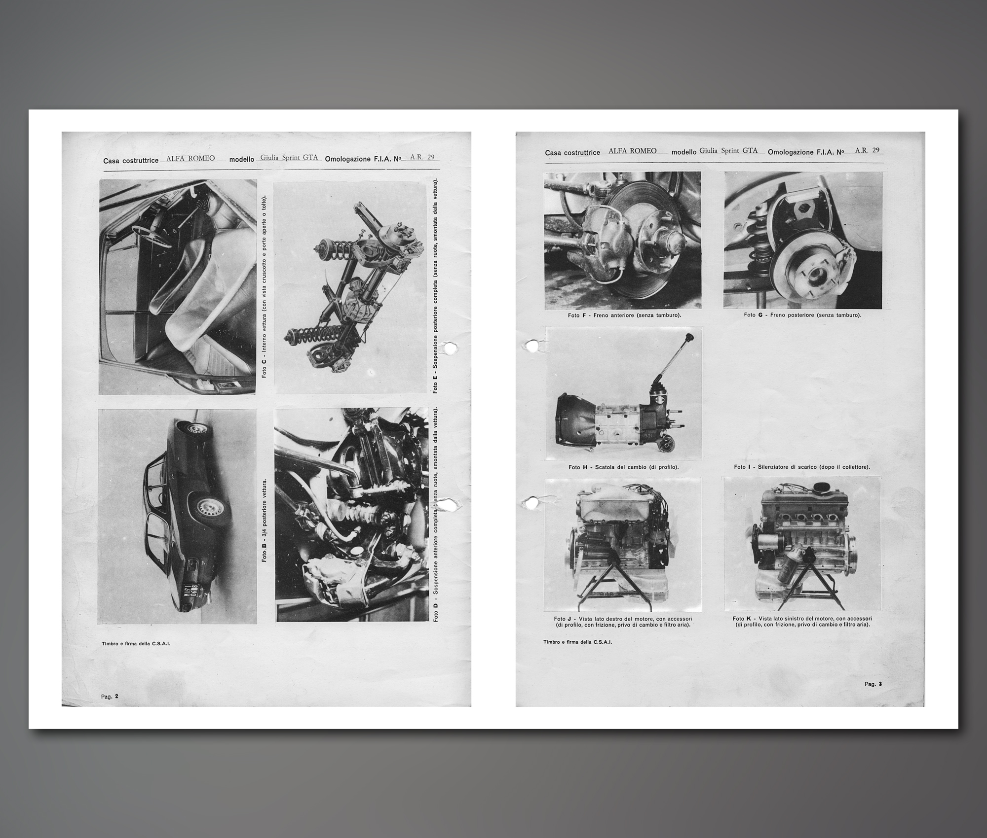 Band 2: "Alleggerita / Technische Dokumentation" enthält die Homologationsunterlagen der Modelle TZ / Giulia TI Super / GTA / GTJ / GTAJ / GTAm sowie die technischen Daten und Hauptkontrollwerte der Modelle GTA und GTAJ. Dieser Band beinhaltet viele zusätzliche Photos von original GTA / GTAJ / GTAm Ersatzteilen.