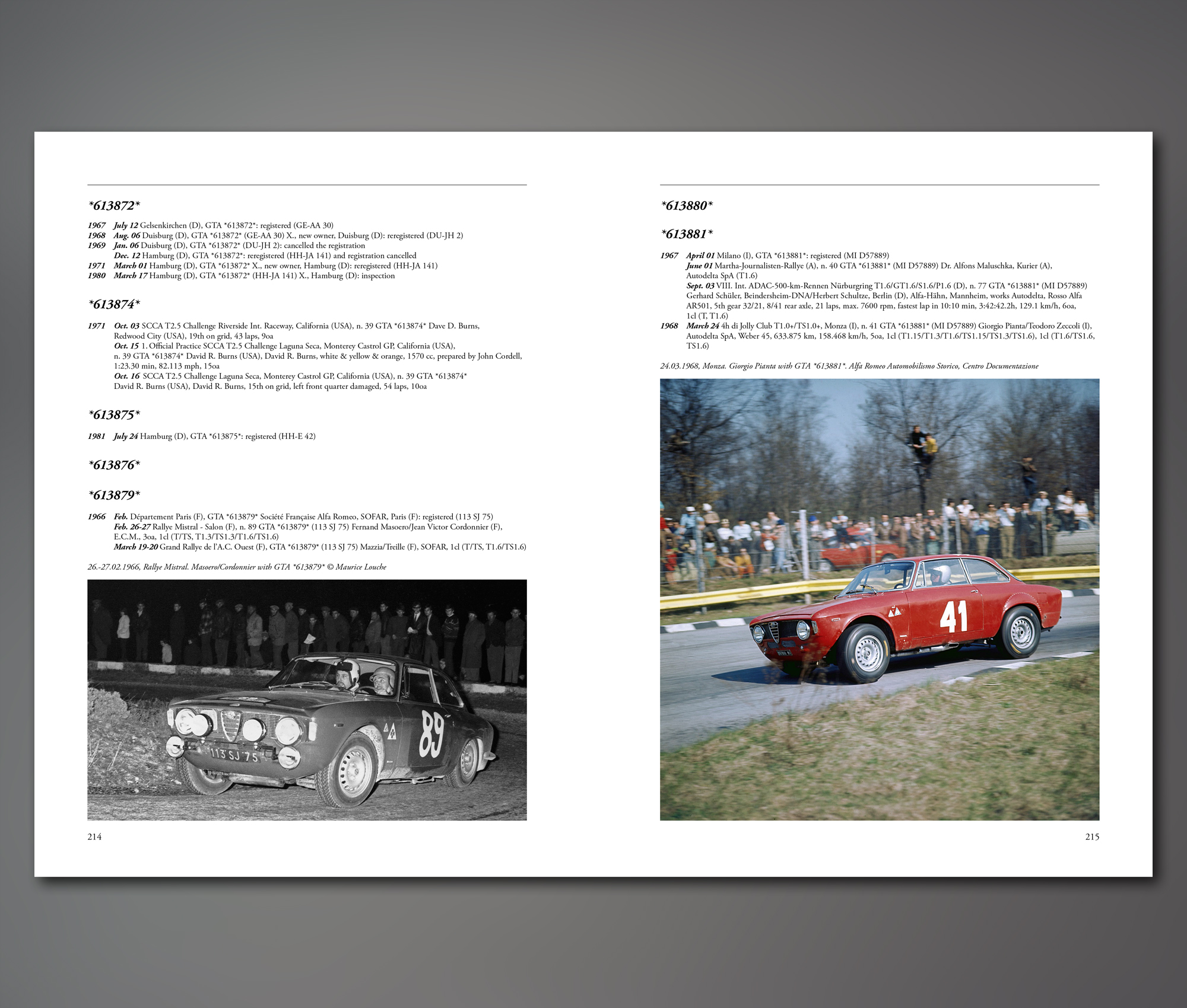 Patrick Dasse has revised Tony Adriaensens’ original work covering the Alfa Romeo Giulia Sprint GTA into a 1456-page, three-volume heavyweight. Volume one covers key racing cars, from the original GTA to the fearsome GTA-SA, with chapters on each describing development and racing highlights plus lots of racing results. Most of the space is devoted to photos of the cars in action and their drivers, which means the development history is concise. Volume two covers technical documentation, complete with original homologation papers and period images of parts. Volume three is a register of chassis numbers plus details of ownership and race histories up to 1981. The set also includes a reproduction Giulia Sprint GTA manual with GTA 1300 Junior supplement. This powerful reference source is limited to 3000 English-language box sets and 1500 in German.