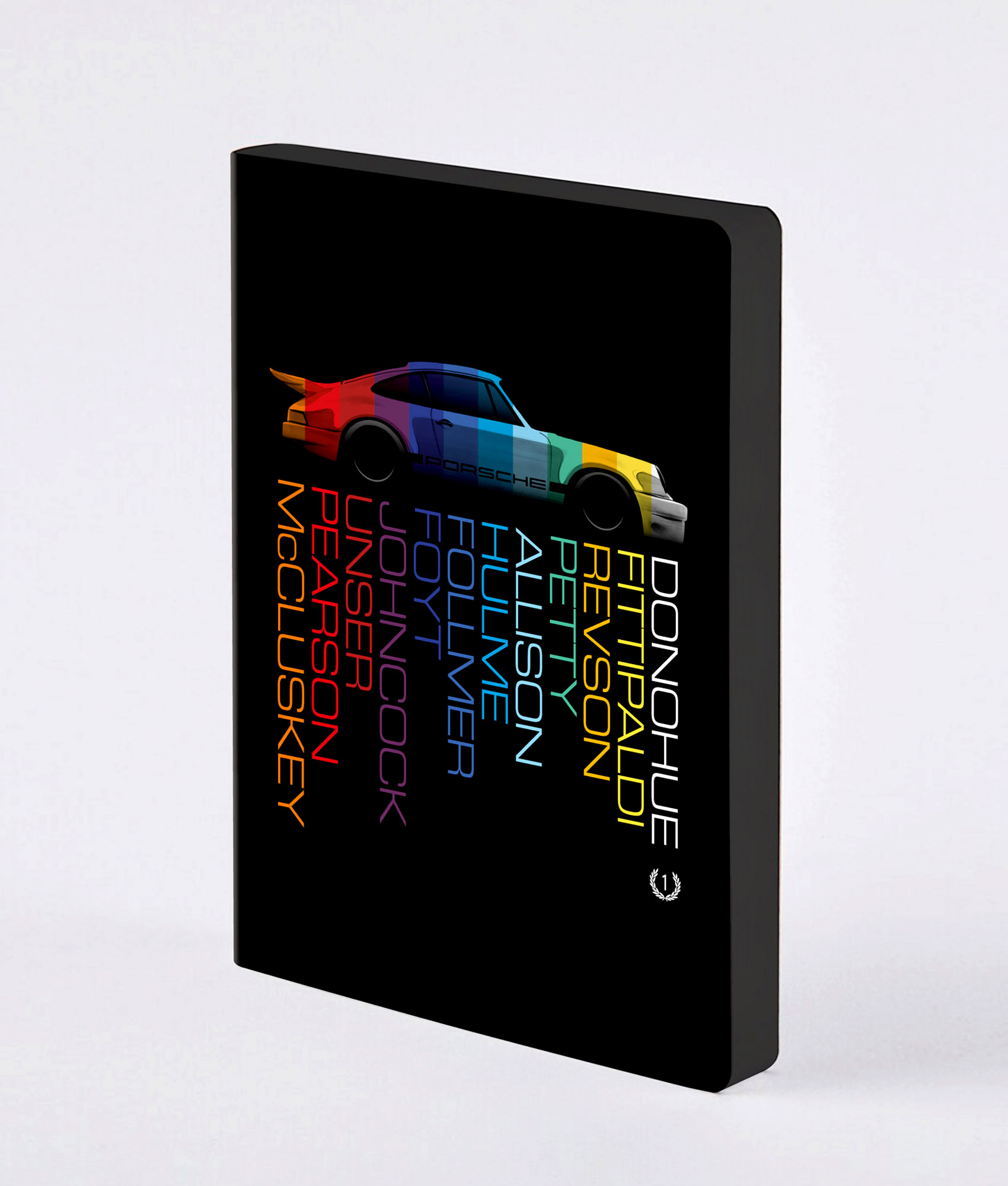 Hochwertige Notizbücher mit einer Auswahl an Designs, die von Alfa Romeo, Lancia, Fiat und Porsche inspiriert sind, nach Originalvorlagen von Guy Allen. Guy Allen, britischer Illustrator, ist ein etablierter Kreativer in der Automobil- und Uhrenbranche mit einer Kundenliste, die Porsche, Abarth, Audi, BMW, Mazda und die FIA umfasst.